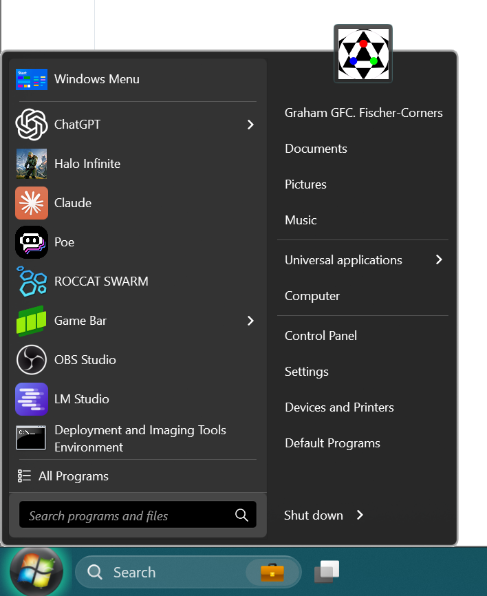 Re‑skins the Start menu & taskbar