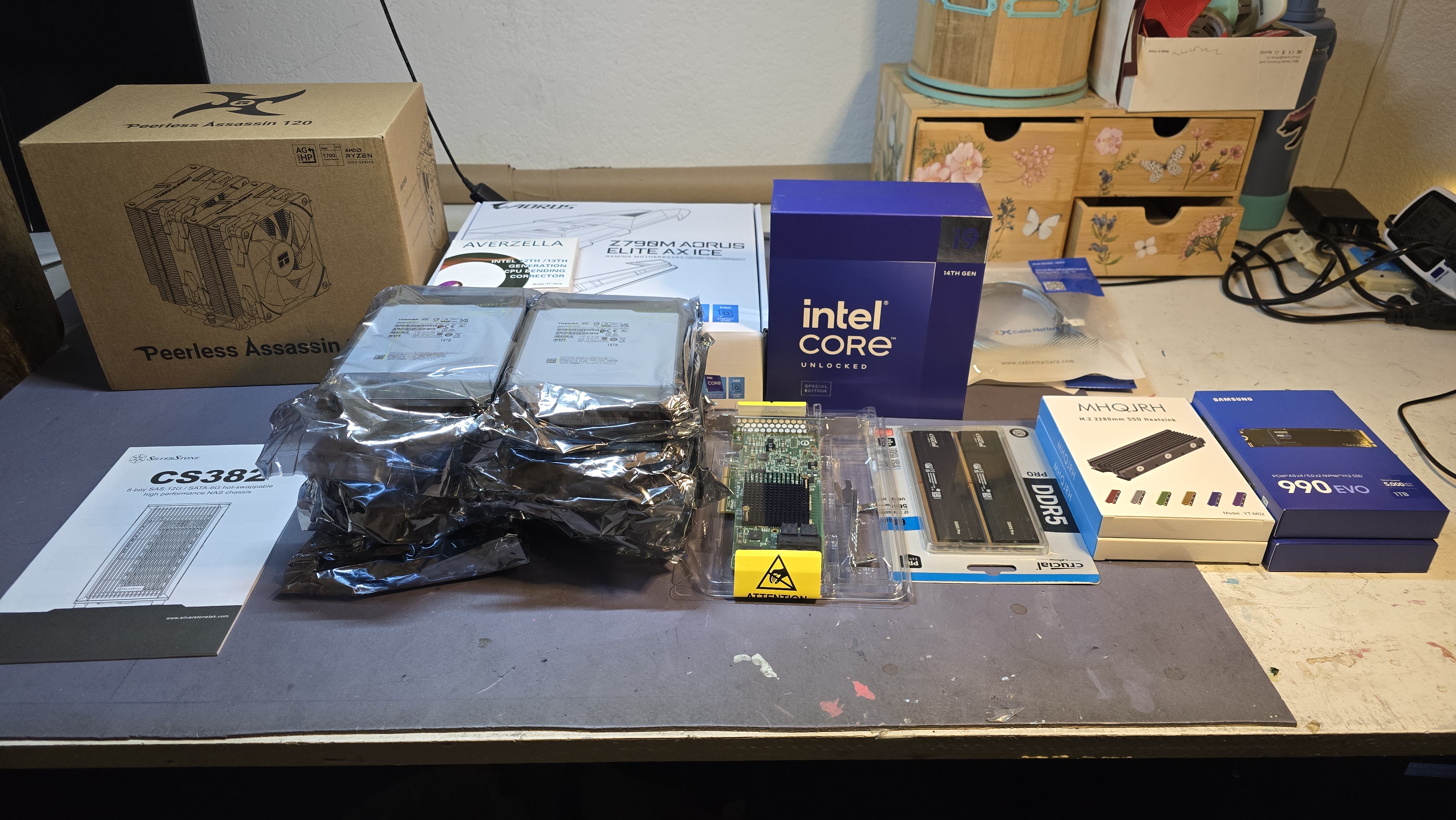 The heart of this build is the Intel i7-14700, a high-performance CPU that might seem overkill for a NAS. However, we chose it to future-proof the system and take advantage of excellent pricing on this part. Its capabilities make it perfect for running virtual machines (VMs) or other demanding workloads, ensuring this system remains relevant for years to come.
