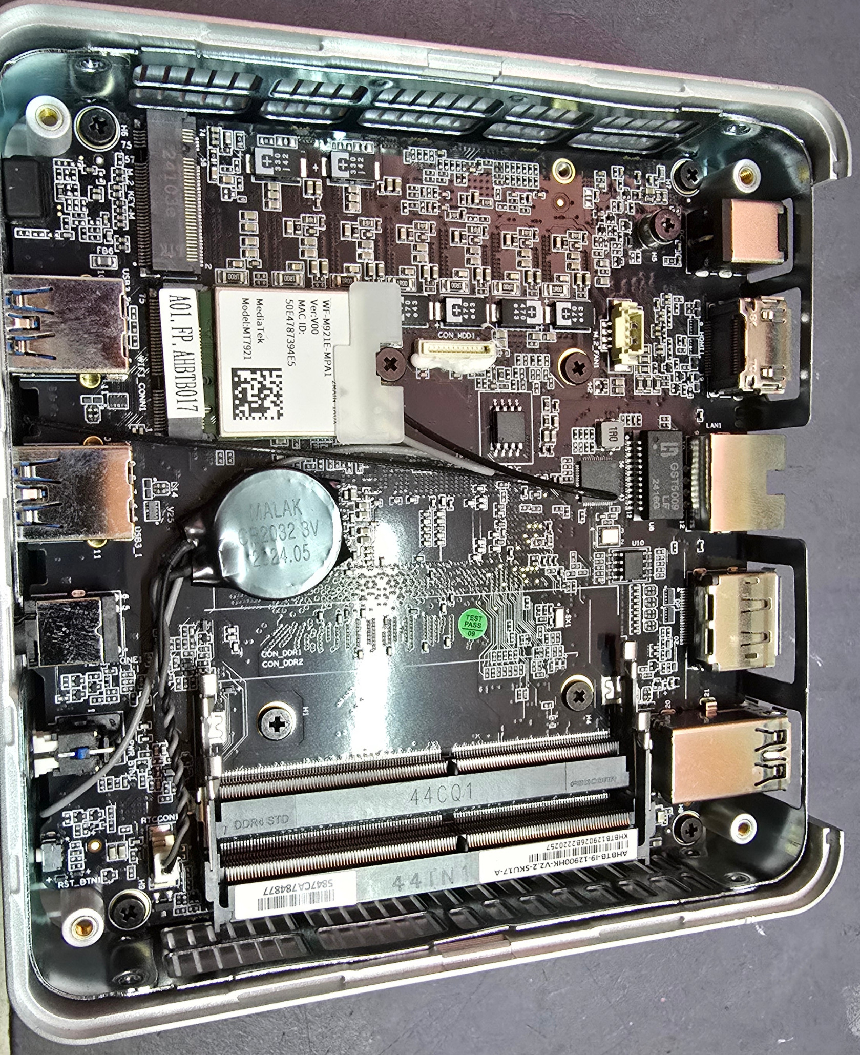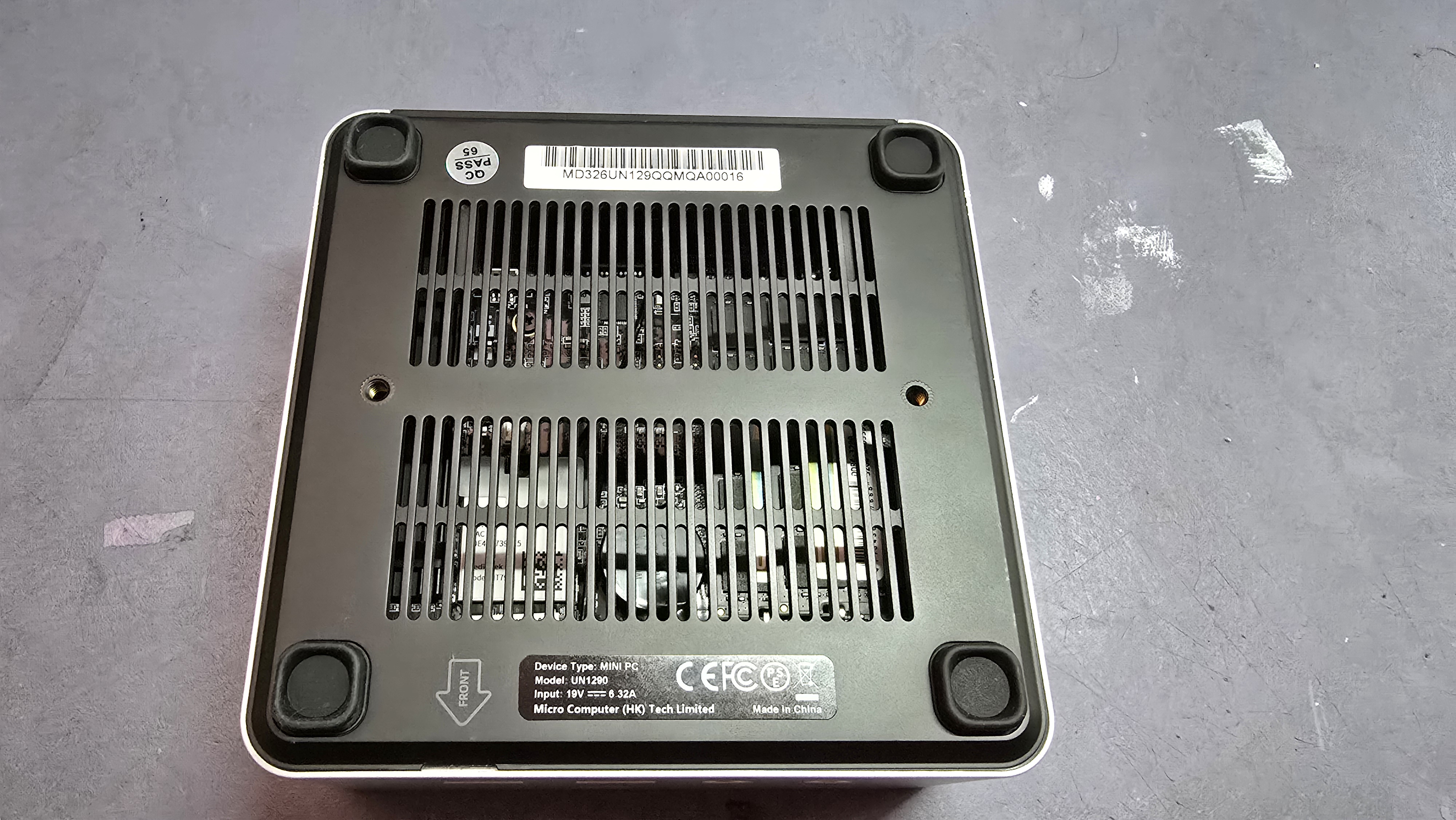 The UN1290 has a relatively sleek design for a mini PC. The build quality feels solid, with a plastic chassis that still adds a premium feel to the device. However, as mentioned earlier, the bottom access panel creates a major inconvenience. The placement of the warranty sticker over one of the screws further complicates installation and detracts from the overall experience of configuring the unit.