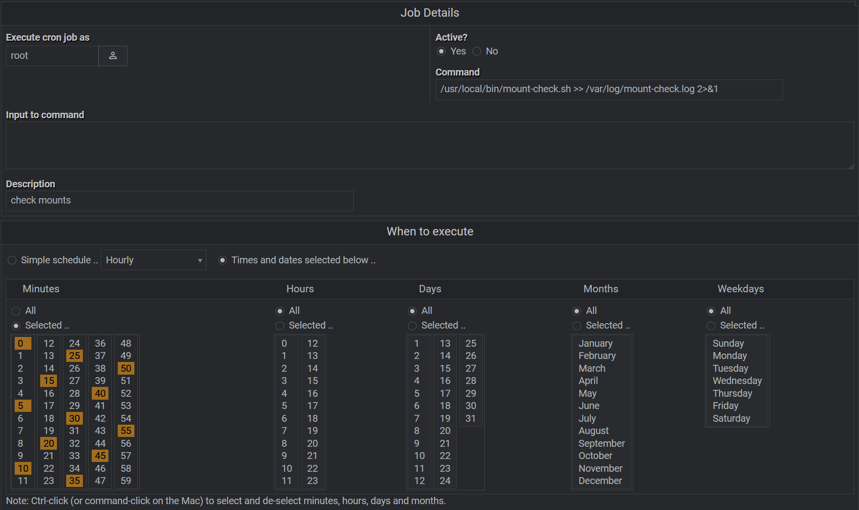 Using the Webmin interface we can easily view and edit the cron schedule