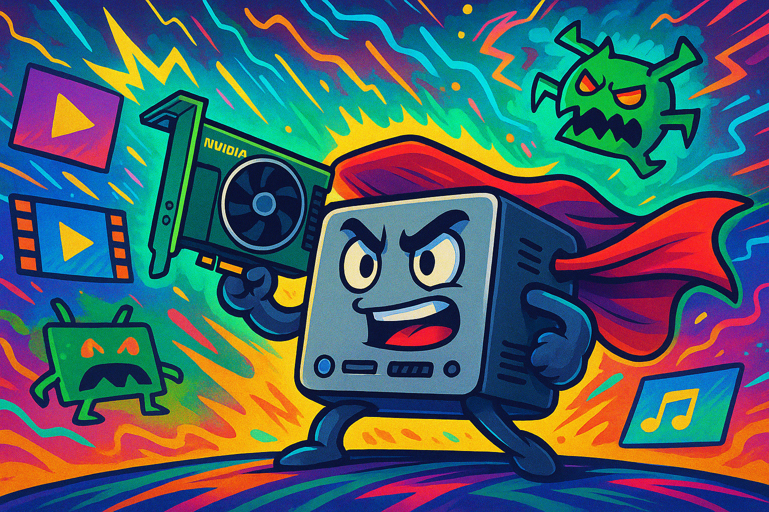 The raw performance still impresses: HEVC 4 K → 1080 p transcodes scream, and every esports title we tried lands well north of 240 FPS. Thermals peak below 82 °C, and the whole rig coasts at ~18 W idle.